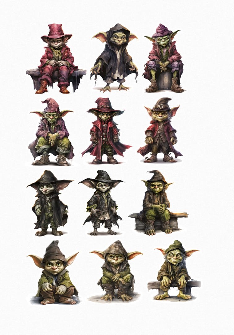 Cette planche de stickers met à l’honneur 12 gnomes aux détails impressionnants. Avec leurs manteaux rapiécés, leurs lunettes d’apothicaire et leurs regards profonds, ils semblent tout droit sortis d’une légende ancienne. Chaque personnage a son propre style : du vieux sage assis sur son banc au petit garnement prêt à vous chiper vos clés !